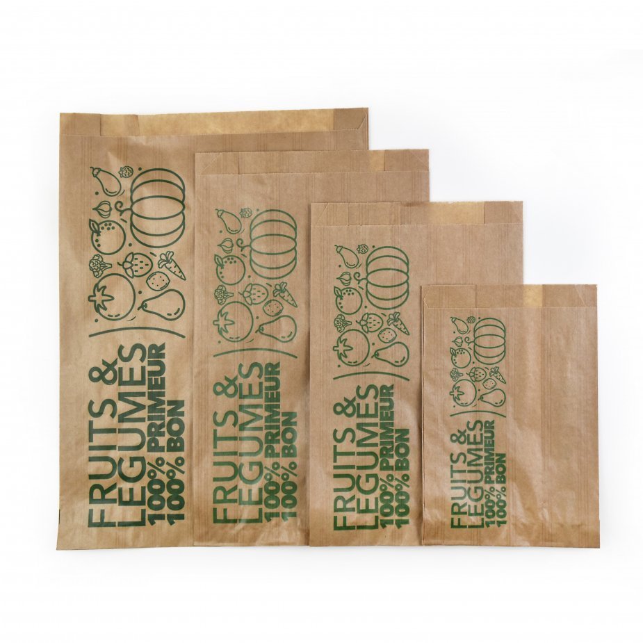 These paper bags are perfect for transporting your fruits and vegetables. They are treated with a moisture-resistant WS coating.